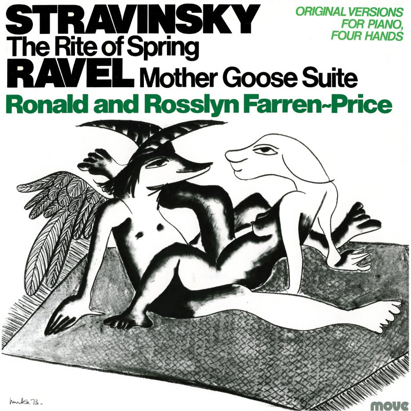 Stravinsky's "The Rite of Spring" was first composed in 1913 for piano four hands, eight years before the orchestral score as published. Ronald Farren-Price and Rosslyn Farren-Price give an intense, highly rhythmic performance of the "Rite" — in stark contrast to the second work on this disc, Ravel's melodic "Mother Goose Suite" which was also originally for piano four hands.